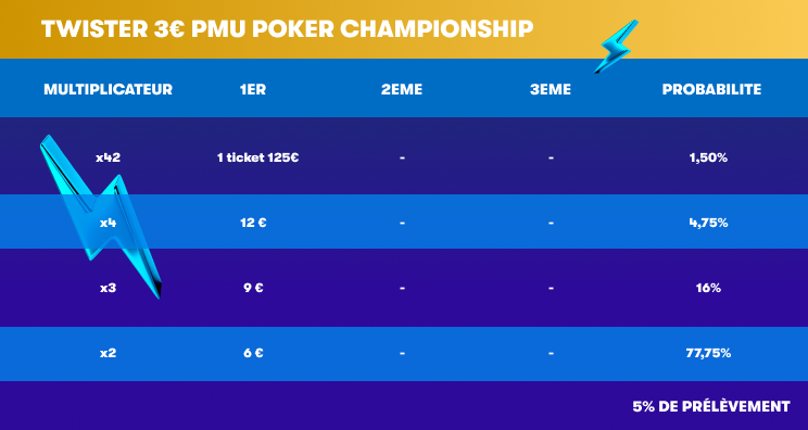 Pour remporter votre tour de roue, il vous suffit de participer à 10 tournois PMU Poker Championship avant le 5 novembre à 23h59. Les satellites et freerolls ne sont pas pris en compte.
