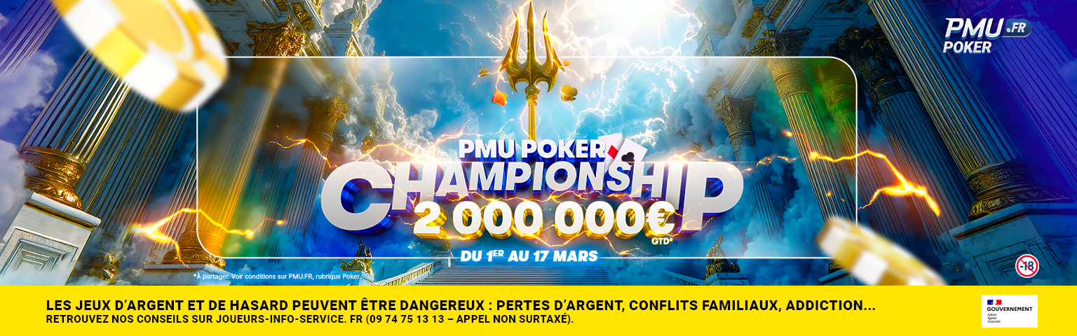 Après le succès de l’Edition 2025 (et un garantie dépassée de presque 500 000€), le PMU Poker Championship est de retour du 1er au 17 mars avec cette fois 2 000 000€ à vous partager sur PMU Poker du 1er au 17 mars 2026 avec un programme XXL de plus de 350 tournois pour nos « Series de l’année » !