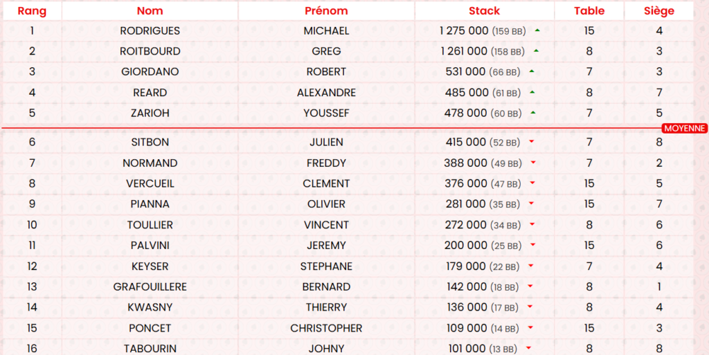 Le Payout complet et les résultats : https://www.texapoker.net/fr/tournois-poker-live/championnat-de-france_2520/19131/infos-live/resultats