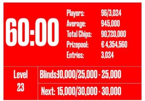 2023 : 1 285 entrées, Prizepool 6 232 250€, Padraig O’Neill (Irlande) pour 1 030 000€.