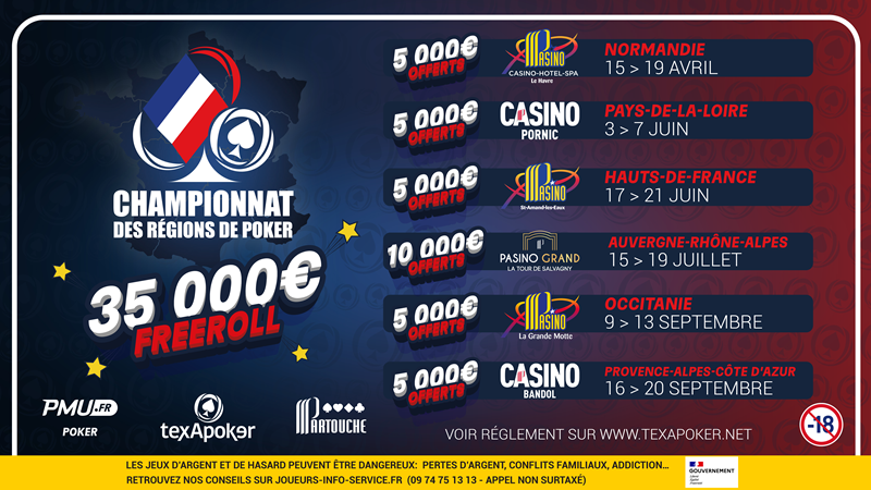 Championnat des Régions de Poker, 6 Freerolls pour 35 000€ de dotations !