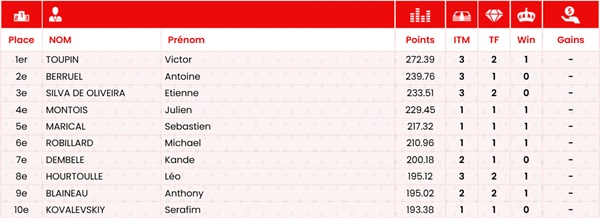 Les 16 premiers de ce Leaderboard disputeront une Finale Online avec 15 000€ offerts par PMU Poker & Texapoker. Ce tournoi se déroulera après la dernière étape FPO à Paris qui aura lieu fin décembre.