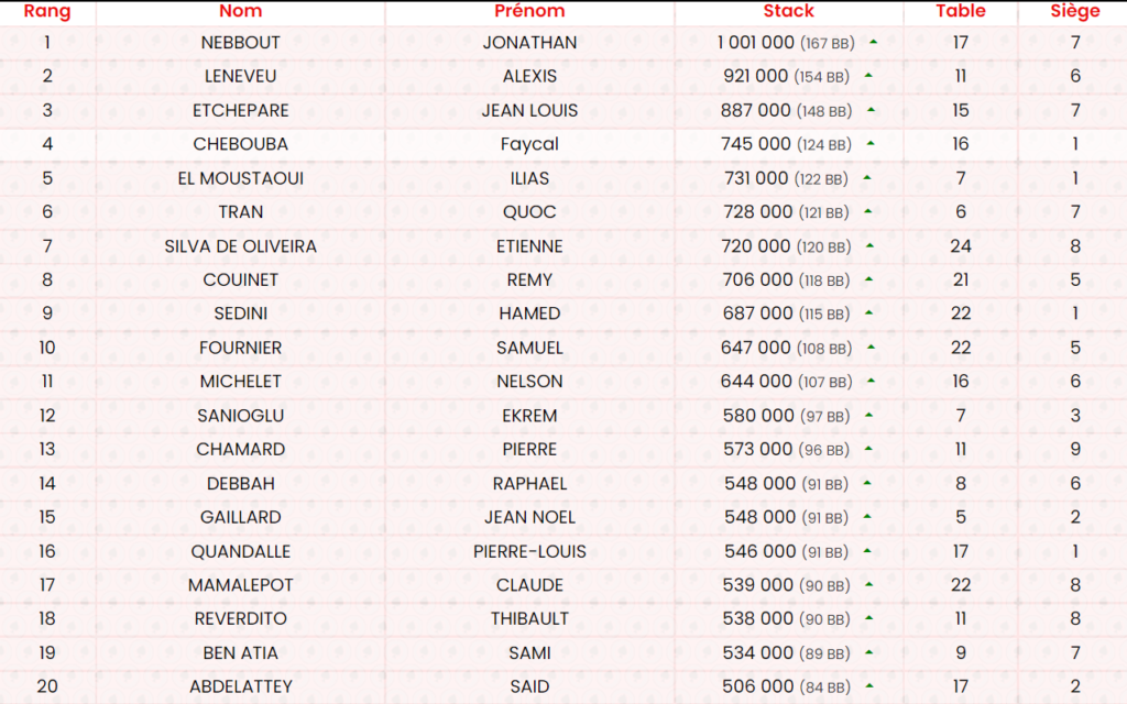 Le Classement complet du Main Event ici.
