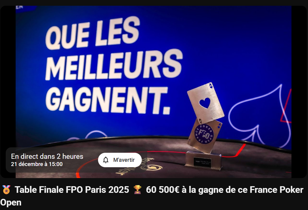 En plus de ce Reportage par Greg CM & Florence M qui débutera dès dimanche 14 décembre, nous vous donnons également RDV dimanche 21 décembre à partir de 14h30 pour la Table Finale sur notre Chaîne PMU Poker YouTube avec cartes dévoilées et un Noël en avance avec plus de 300€ de Tickets PMU à gagner !