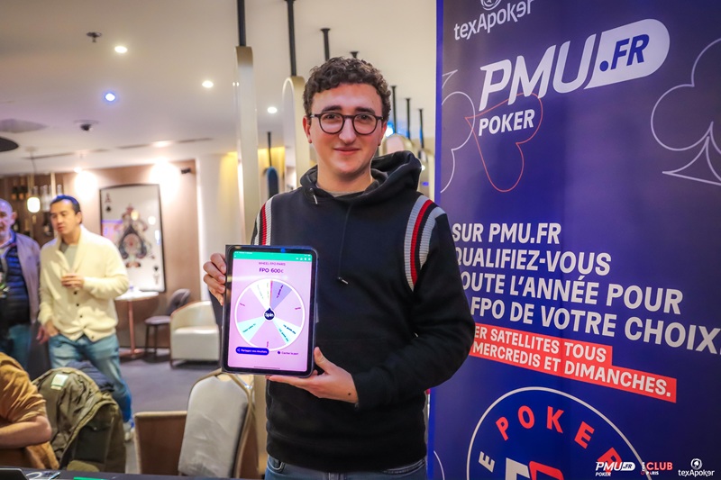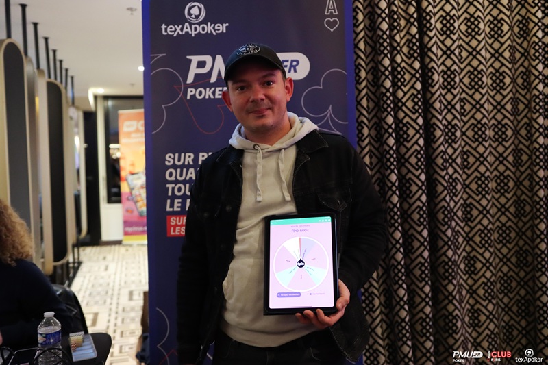 • Et enfin mise en place d’une Animation Wheel pour tous les participants du Main Event FPO (pendant les Jours 1A, 1B, 1C, 1D et 1E entre 15h et début du Dinner Break et pendant le 1F avec à gagner notamment : des Tickets Online, de Freebet PMU Sport, des Sweats PMU et des Goodies ! Modalités à découvrir sur place.